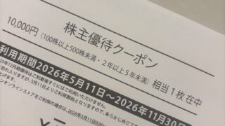 株 優待【株主優待到着】6630ヤーマンからお買物券 みなさん、こんにちは。 6630ヤーマンから株主優待のお買物券が届きました。 いつのまにか保有が2年以上になり、1万円分のお買物券を頂きました。 使えるのは5月11日からということで一時お預けですね。 ...2026.03.19株 優待