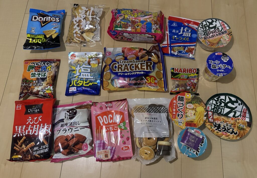 カップラーメン、あまいの、しょっぱいのがぎっしり。
