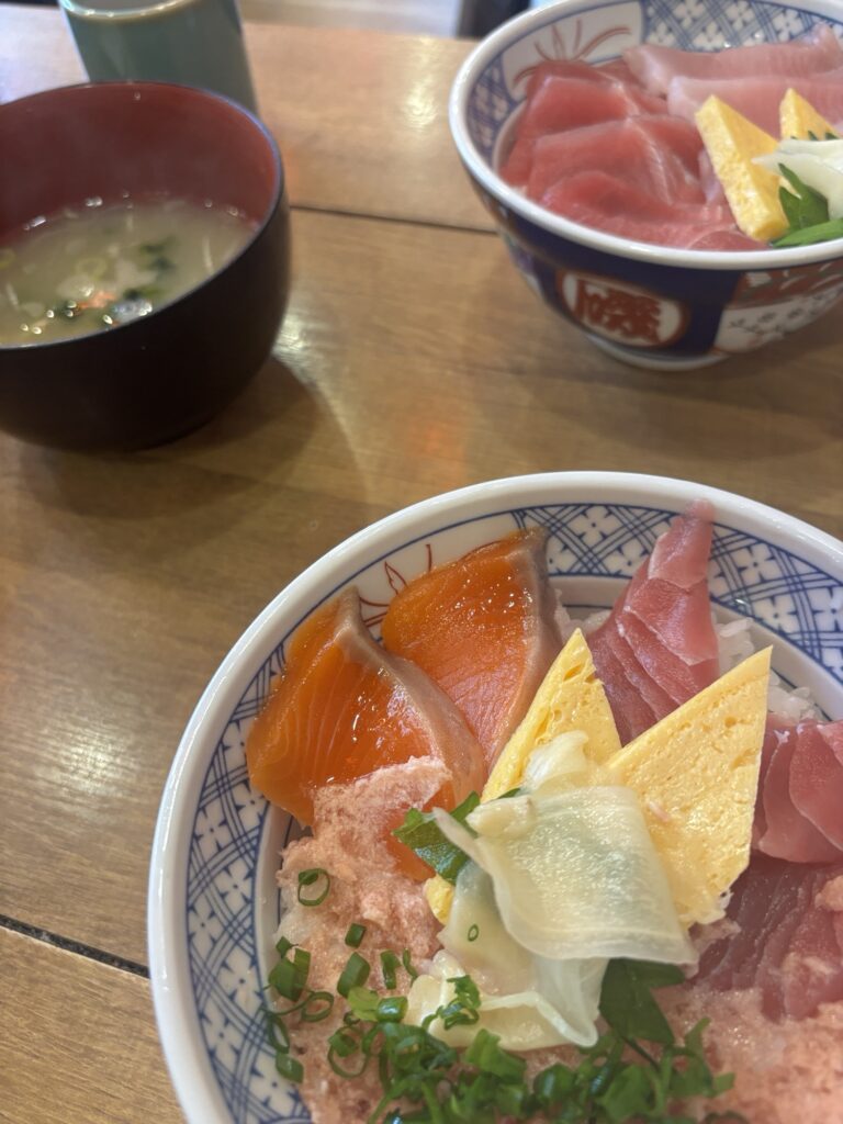 私は3色丼、息子はマグロ丼とお味噌汁。