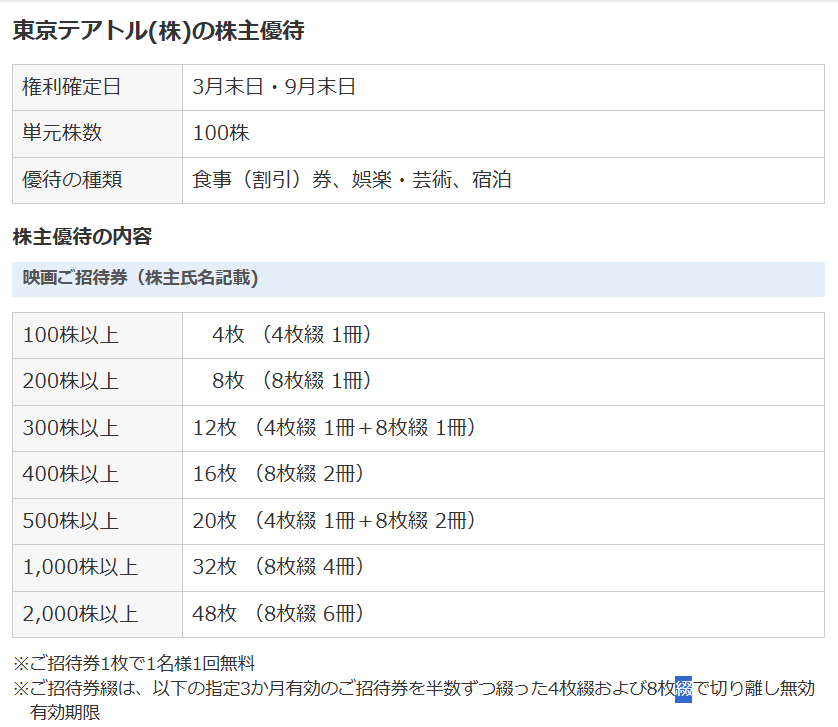 株 優待株主優待【株主優待到着】東京テアトルより映画鑑賞券株 優待2026.01.23みなさん、こんにちは。東京テアトルさんより映画鑑賞券が届きました。今年初の株主優待♪嬉しいです。100株×3名義です。もう何回いただいたかわからないけれど、お気に入りの優待です。子供たちも楽しめるし。株価も含み益。—優待内容はこちら↓ヤフーファイナンスさんより実は今月期限の券が1枚あるのでなんとしてでも使います!—最後までお読みいただきありがとうございました。にほんブログ村にほんブログ村