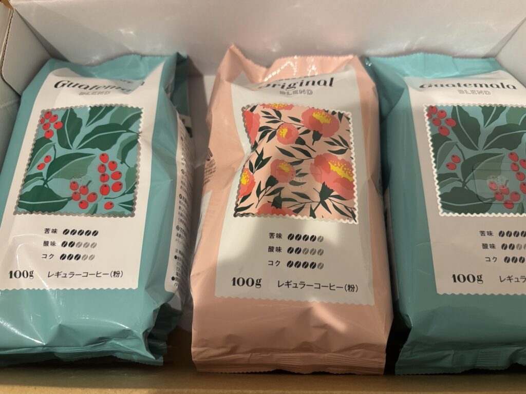 100gのコーヒー×3個。