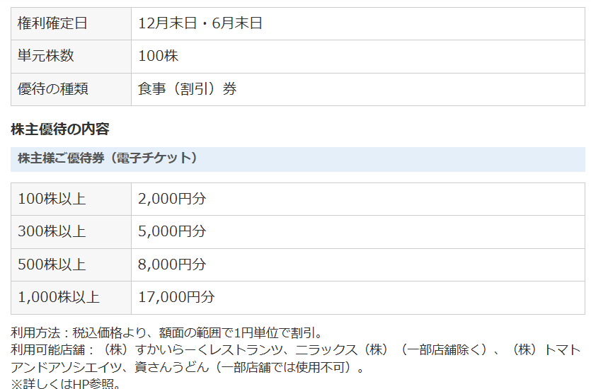 すかいらーくの株主優待はこちら↓ヤフーファイナンスさんより
