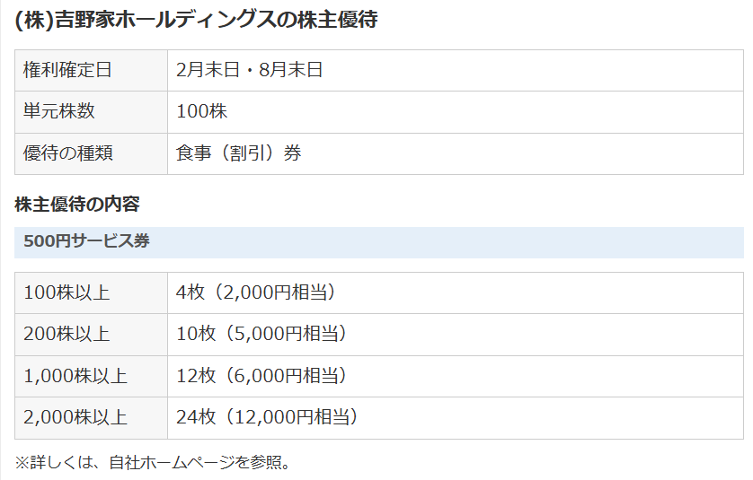 吉野家HDの株主優待はこちら↓ヤフーファイナンスさんより