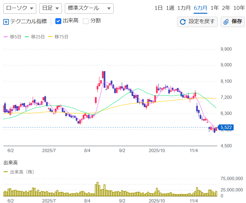 台湾有事の高市さん発言で中国関連の株が影響を受けたのかもしれませんが・・・
